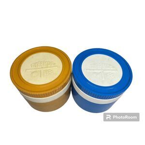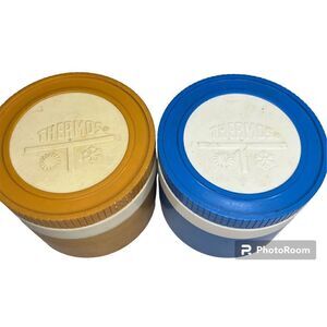 Thermos vintage insulated jar. Gold and blue 2 of them