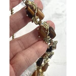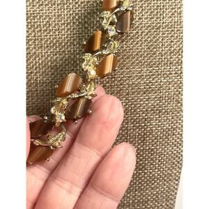 Thermoset Lucite Choker Necklace w AB Stones Tigers Eye Effect Mixed Root Beer
