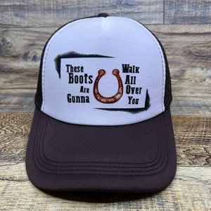 These Boots Are Made for Walkin' Mens Trucker Hat Brown Snapback Dolly Parton