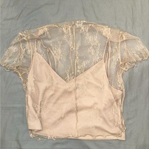 Cream colored mesh top with built in tank top underneath. Size medium. Only worn once!!