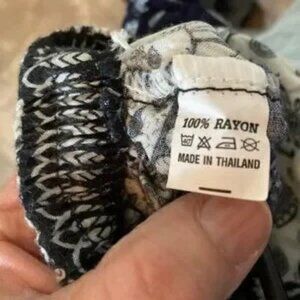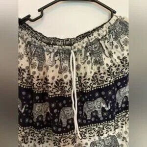 Discover an extraordinary piece that’s simply breathtaking — you won’t find anything like it! These large, stretchy cotton linen pants, handcrafted in Thailand, are a rare gem. Worn during missionary work in a village, they are made with love and care, offering unmatched softness and comfort. The exquisite deep blue and cream design, reminiscent of paisley, is accented with a beautiful exposed drawstring — a true work of art. Elevate your style with this one-of-a-kind find!