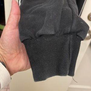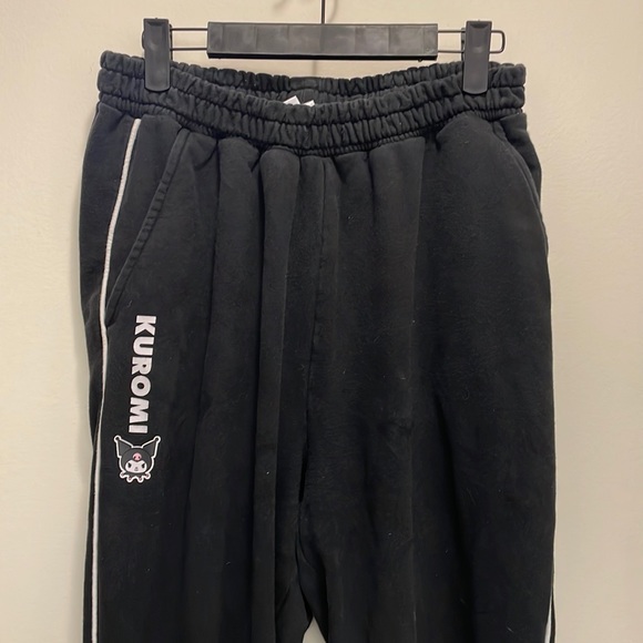 White pipping on leg, fitted at ankle, logo next to pocket, elastic band. Its sanrio from the official website so it is high quality.