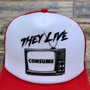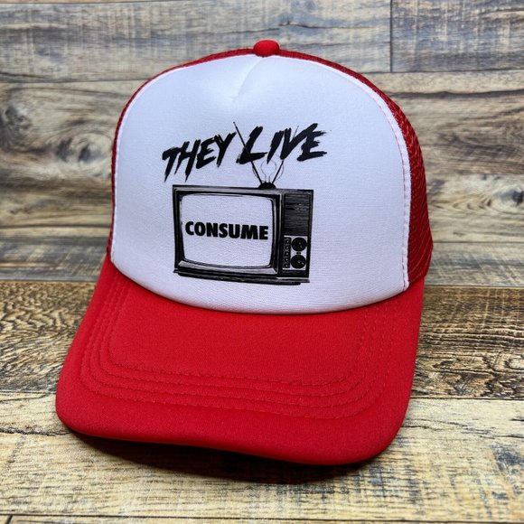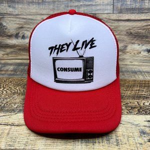 They Live John Carpenter Consume Mens Trucker Hat Red Snapback Horror Ball Cap