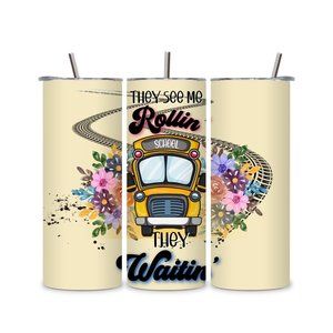 Introducing the "They See Me Rollin School Bus Driver Life" 20 oz Skinny Tumbler! ๐๐