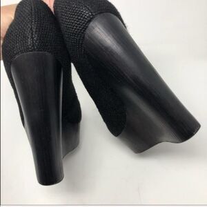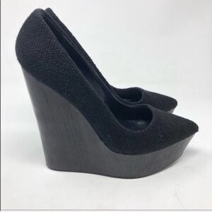Theyskens’ Theory Canapa Wedge Pump. Like New Condition. Size 40 fits US 9-9.5. Heavy woven black cotton upper. Wooden wedge. 6" wedge heel. 1.5" platform.