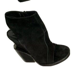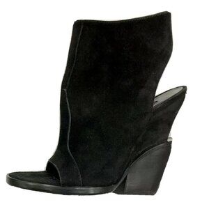 Theyskens’ Theory Black Suede Tiered-heel Open Toes Shoes Booties Sz 37 Italy