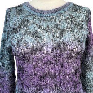 Theyskens Theory Mohair Blend Sweater Womens Sz L Jewel Purple Blue Fuzzy Ombre