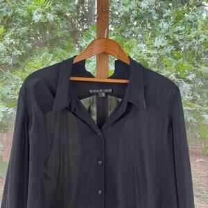 Theysken's Theory Women's Black Sheer Long Sleeve Blouse Size S