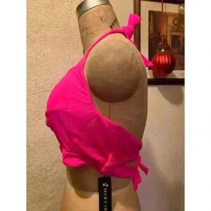 Thick Band Push Up Halter Padded Bikini Swimsuit Top Hot Pink NWT Size 20W