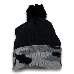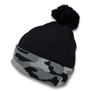 Black Camo Without Logo Thick Double Layered Beanie Camo Pattern Long Cuffed Ski Snowboard Hat with Pom