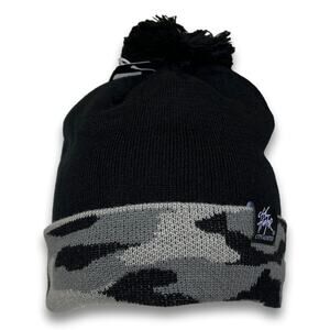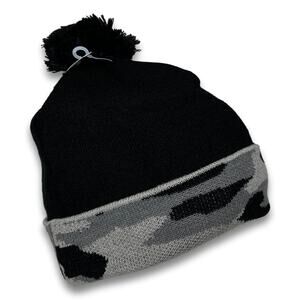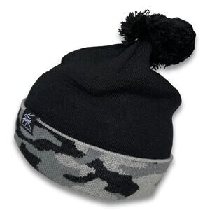 Black Camo With Logo Thick Double Layered Beanie Camo Pattern Long Cuffed Ski Snowboard Hat with Pom