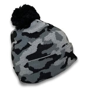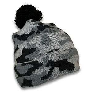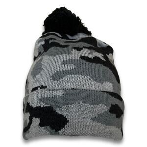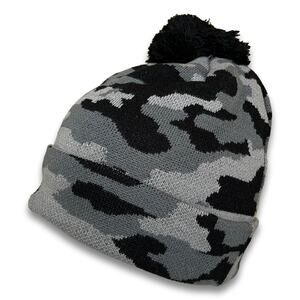 Grey Camo Thick Double Layered Beanie Camo Pattern Long Cuffed Ski Snowboard Hat with Pom