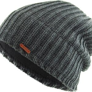 Thick Ribbed Slouch Beanie Thermal Fleece Lined