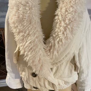 Thick ivory linen bomber jacket soft free people . Size XS but very roomy can fit up to size 6. On size 2 mannequin.