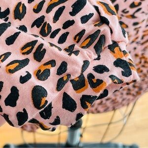Perfect fit when you need a pop of pink in your life. I love the animal print on the fabric. Mini length. B neck. Long sleeve. Oversized blousey top. Angled bottom design. There is a small spot on the back fabric (pictured). Elastic waistband.