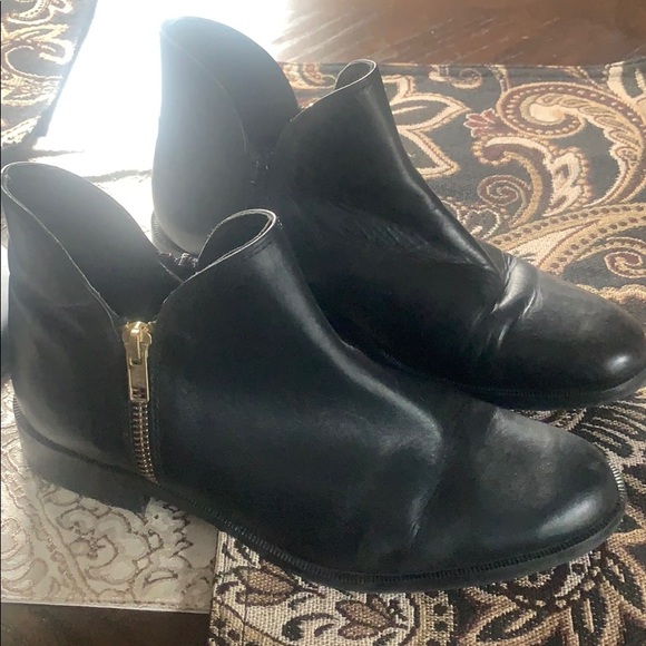 Nice leather in used but good condition over all. Leather is soft. Inside sole leather which helps with comfort. Stylish shoe boot. Inside zipper.