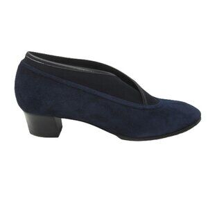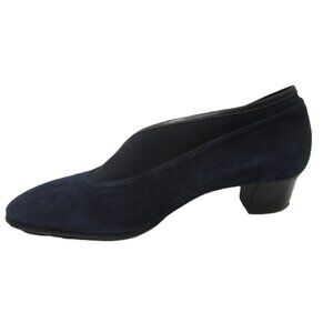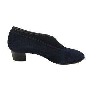 Beautiful navy blue suede for the main part of the pump with contrasting black knit that wraps around your foot like a glove. Leather linings and insole. Made in Italy.