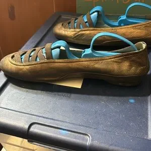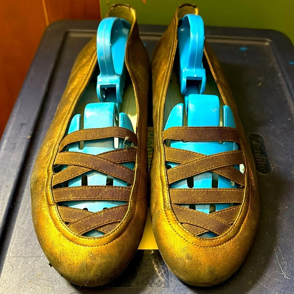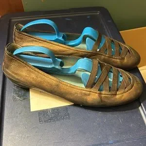 Thierry Rabotin shoes. Size 38. Leather, copper color. Still have some good wear left in them. These originally sold for $395, but I bought them at a reduced price in the 200's. You can have them for any reasonable offer. They were new when I bought them. Theirry Rabotin shoes are handmade, the following is a description: Thierry Rabotin is an Italian shoe company that makes comfortable, high-quality women's shoes. The company is known for its use of a "sacchetto" method, which involves over 200 steps to ensure the shoes are durable and comfortable. Thierry Rabotin shoes are made using hand-selected Italian fabrics and leathers.