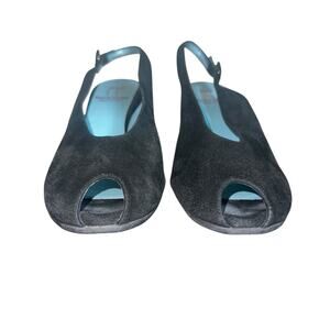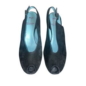 Thierry Rabotin Black Suede Slingback Wedge Heels Size 40 (9.5) Made in Italy