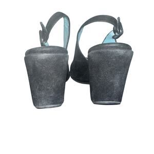 Crafted from soft black suede, they feature a peep toe, adjustable slingback strap, and the brand’s signature sky blue leather lining for luxurious comfort.