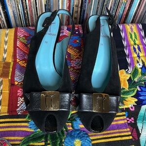 Thierry Rabotin Campbell 9243 Peep Toe Slingback in Black Suede Size 7.5