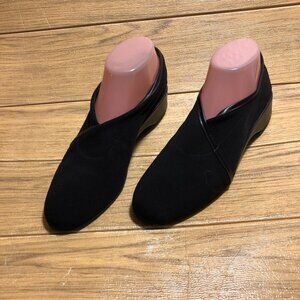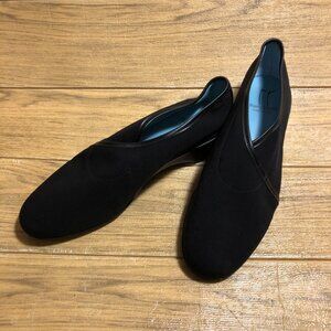 Thierry Rabotin Microfiber/Nappa women black Trim slip on shoes, size 7, Black microfiber flat slip on shoes with leather trim. Heel 1.5", Leather lined, Made in Italy, Size 37.5 (US 7)