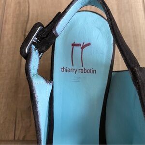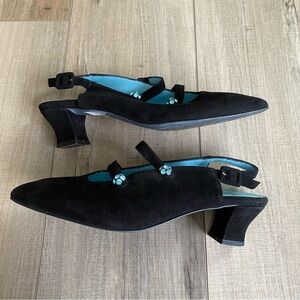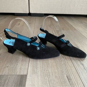 Thierry Rabotin Women's Black Suede Slingback Heels Crystal Embellishments 7.5