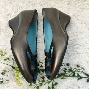 Thierry Rabotin Women's Pewter Metallic Peep Toe Low Wedge Made in Italy 37/ 6.5