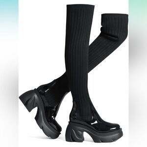 • TRENDY DESIGN - With the chunky sole, the black thigh high platform boots keep you not feeling tired after a long time walk. These women's over-the-knee boots elongate your legs, show off your sexy and figure to perfection.