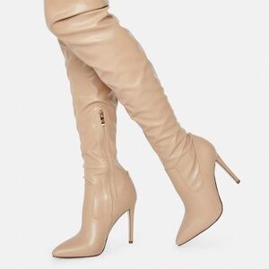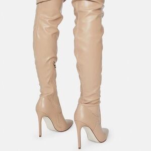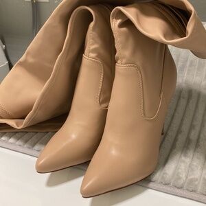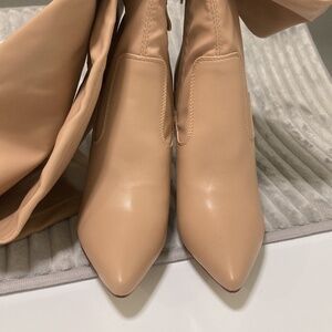 Thigh High Boots with Stiletto Heel Beige Buttery Soft Size 7.5 Calf Side Zipper