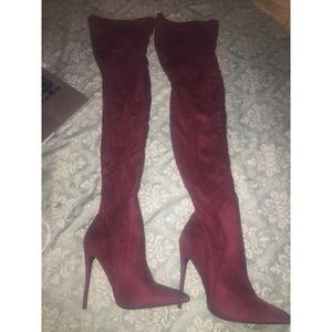 Skinny heel thigh high burgundy boots.. no refund:)