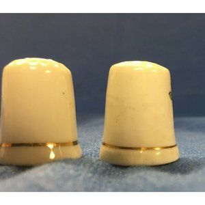 2 Porcelain Thimbles. Each with birds painted on them. Each thimble measures 1"x1"