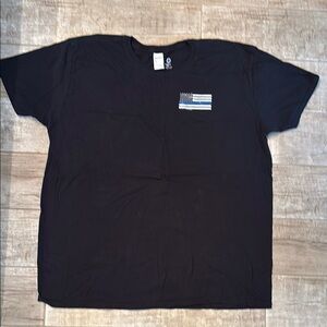 Item: Stylish black t-shirt featuring thin blue line flag