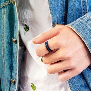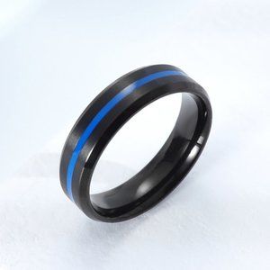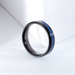 Thin Blue Line Stripe Stainless Steel Ring Band