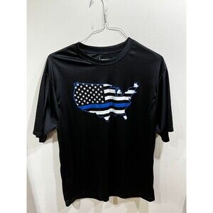 Thin Blue Line T-Shirt Men's 2XL US Map Flag Short Sleeve Cotton