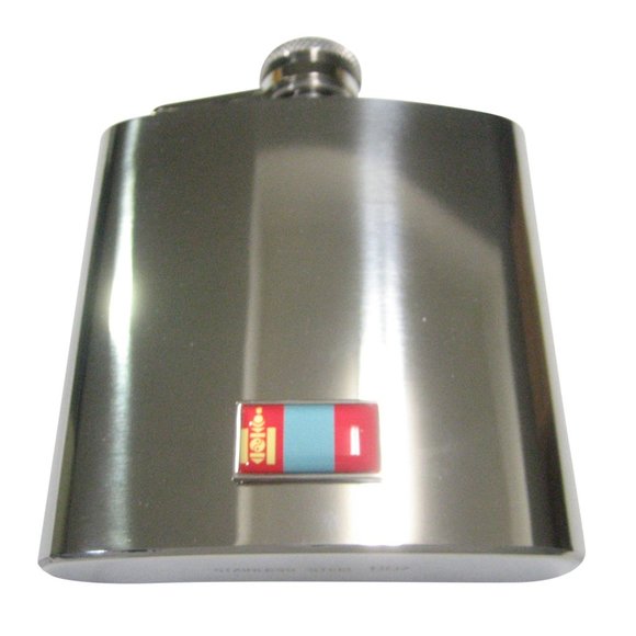 The Stainless Steel Flask holds 6 oz. of liquid. Flask is 4 1/2 inch tall by 3 3/4 inches wide