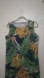 Sleeveless sheath dress, designed in a vibrant green and yellow tropical leaf print. Perfect for casual vacation wear, this midi dress features a flattering scoop neckline and a classic sheath silhouette. It's far more flattering on the body than the hanger. 37.5" long, and 19" from pit to pit.