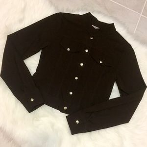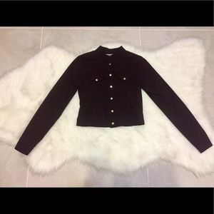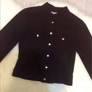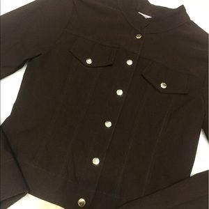 Lovely jacket. It's very thin so it's not really meant for cold weather. Best for a breeze. It's button down and has faux pockets. It's labeled a size small but I think it's better suited for an XS or 0.