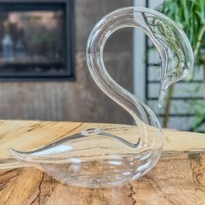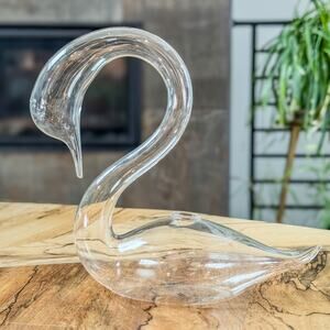 Thin & Delicate, Vintage Hand Blown Clear Hollow Glass Swan Bud Vase, 6”