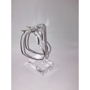 Thin Large Heart Silver-Tone Hoop 1 7/8" Earrings!
