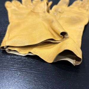 Thin Leather Yellow Riding Gloves in size Medium. Perfect for protection in warm weather. Super soft thin leather. Minor signs of use. No notable flaws. Please refer to photos for exact details and condition.