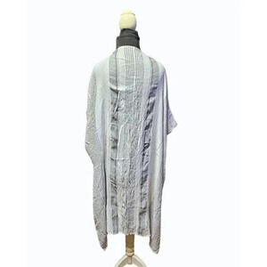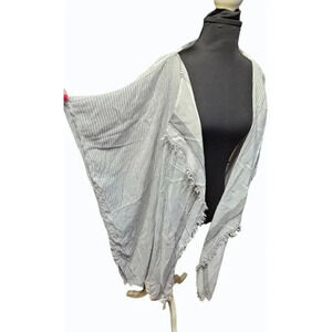 Thin Lightweight Shawl Wrap Wide Sleeves Side Slits Fringe Vertical Stripes OS