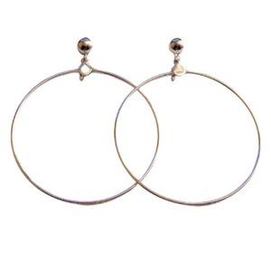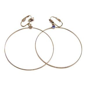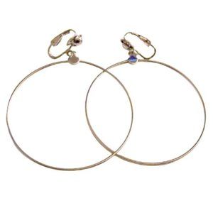 Thin ring wire hoops comfort clip on earrings vintage silver tone smooth metal finish round domed top connector small buttons. In excellent never worn vintage condition. Measures 2 3/4 inches long 2 1/4 inches wide.