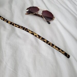 Thin, vinyl leopard print belt. Shiny, with a round, gold buckle