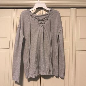Grey long sleeve sweatshirt with ties in the front Worn a couple times But in good condition From Target