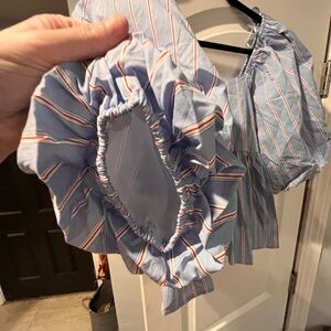 Elevate your style with this chic blue striped top. Perfect for any occasion.