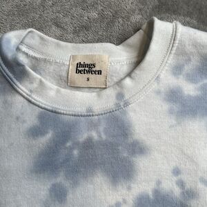 Things Between Sweatshirt Women’s Small White Blue Clouds Crew Neck Long Sleeve