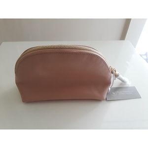 Things Remembered Cosmetic. New with tags. Keep your favorite go-tos organized, from makeup to travel accessories, with our Blush Leather Rounded Cosmetic Bag in your arsenal. Cut from genuine leather, the saffiano-textured bag features an interior slip pocket, durable cotton lining, and zipper with a leather tassel detail. Engrave the riveted gold plate on the front with your monogram, name or a significant date.