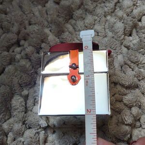 Things Remembered silver photo gift box hanging from a red velvet ribbon. Perfect for giving that special someone in your life a special Christmas present that can be personalized.
