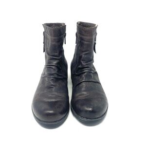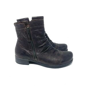 Think! deep brown leather boots. Women's size 6/37. Heel height about 1", boot height about 6". In good pre-owned condition. Box not included.